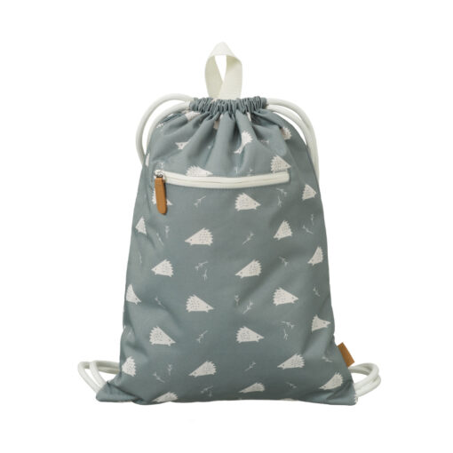 Esta mochila saco é fabricada a partir de garrafas PET recicladas.