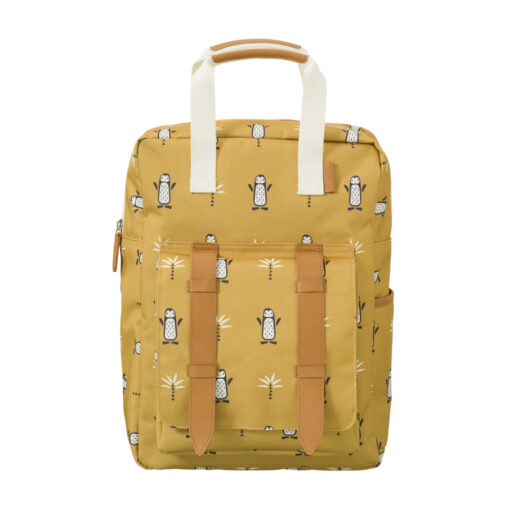 As alças são ajustáveis, tem um bolso exterior grande (com íman) e um bolso lateral. Tem também uma asa superior para poder ser pendurada em qualquer lugar e uma correia para poder ser ajustada ao peito.